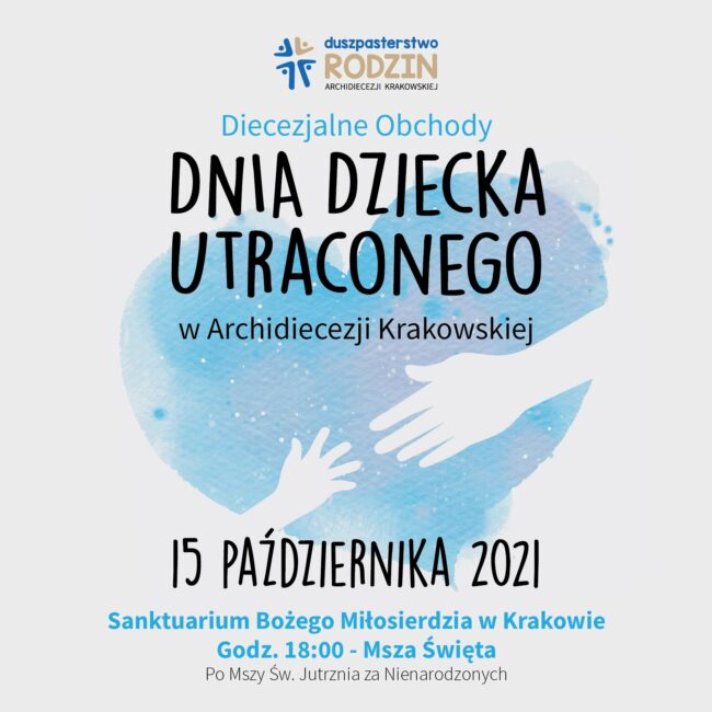 Wydział Duszpasterstwa Rodzin Kurii Metropolitalnej w Krakowie zaprasza w piątek, 15 października 2021 r., do Sanktuarium Bożego Miłosierdzia w Krakowie na diecezjalne obchody Dnia Dziecka Utraconego. Jest to Dzień, kiedy otaczamy modlitwą Rodziców, którzy utracili swoje dziecko przed jego narodzinami. O godz. 18.00 będzie sprawowana Msza Święta dziękczynna za dar życia połączona z zawierzeniem zmarłych dzieci Bożemu Miłosierdziu. Organizatorzy proszą o przyniesienie karty z zapisanym imieniem dziecka( może to być…