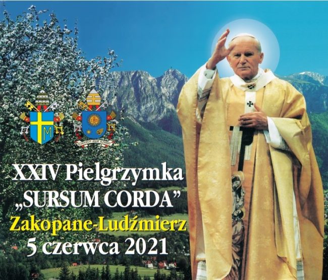 W sobotę – 5.06.2021 wyrusza XXIV Piesza Pielgrzymka „Sursum Corda 2021” z Zakopanego do Sanktuarium Maryjnego w Ludźmierzu pod hasłem „Nie kradnij.” O godz. 7.00 nabożeństwo na rozpoczęcie Pielgrzymki w Sanktuarium Matki Bożej Fatimskiej na Krzeptówkach, potem przejście Szlakiem Papieskim i o godz. 18.00 Msza św. koncelebrowana w Sanktuarium Matki Bożej Królowej Podhala w Ludźmierzu. Zgłoszenia i zapisy w zakrystii lub podczas pielgrzymki; opłata 5zł od uczestnika na ubezpieczenie.